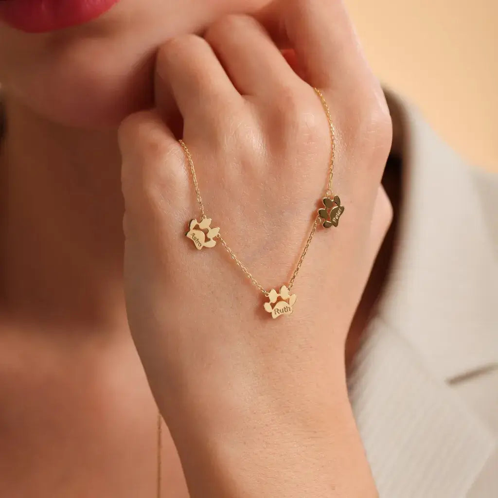 Colier cu lăbuțe personalizat cu nume - lăbuțe separate